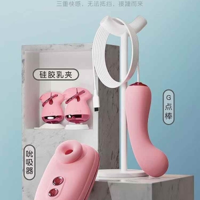 吸吮震动主机,硅胶G点棒,可调节双震动乳夹,10频震动,凶猛夹击,迅速高潮