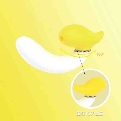旋转香蕉按摩棒,硅胶材料,香蕉概念,一物多用.可以把功能头旋转而改变其使用功能,吸吮功能+专利旋转变身功能+震动功能,另一头还可入体震动!全身防水,可在水中嬉戏.三个按键分别控制三个单独的开关,操作简单,USB充电.